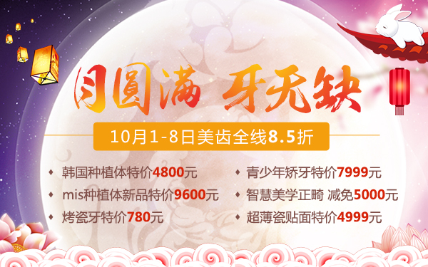 麦芽口腔双节献礼,为了回馈广大顾客,特推出美齿黄金周8.5折优惠,通过网络预约的顾客即可享受麦芽口腔种植特价好礼,同时还有各种美齿优惠: