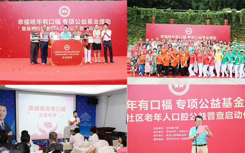 在深圳都市报、深圳市社会公益基金会、深圳市老年人体育协会、深圳麦芽口腔各级领导的共同见证下,麦芽口福基金成立,全市所有社区居民开展公益口腔检查、公益讲座,并为退伍军人、军烈属、残疾贫困或社会突出贡献人士提供治疗费用减免的医疗援助,服务深圳老年人的口腔健康。