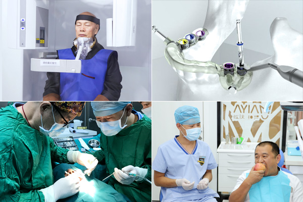 对于罗家英口内情况,由深圳二院原口腔科主任郑苍尚教授领衔的种植医师团队联袂定制方案,采用微创无痛拔牙阶段性拔除无用患牙、数字化导板种植阶段性修复缺失牙及其种植二期修复牢固结合安装牙冠的过程。