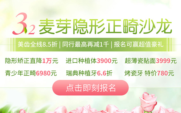 现在,你所担心的都不是问题,隐形牙套帮你在旁若无人中矫正牙齿!与传统矫正的方式相比,无托槽隐形矫正可更美观,而且清洁方便,无论是吃货宝宝还是精致的猪猪女孩都可以选择它,这款超fashion的变美利器,在明星与时尚达人圈非常受欢迎,可以说是强烈安利的矫牙方式。参加3月2日的活动,还能有隐形矫正直降1万的优惠福利~