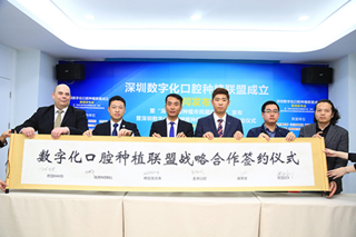 图为与种植体厂商达成数字化口腔种植联盟战略合作
