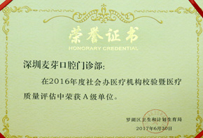 麦芽口腔连续荣2016~2017医疗服务A级单位